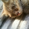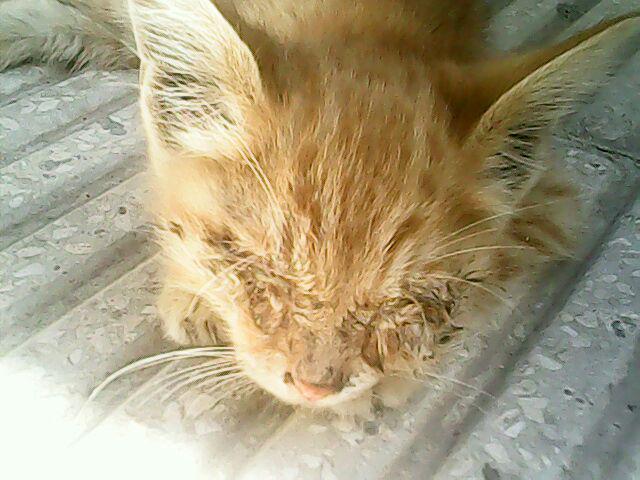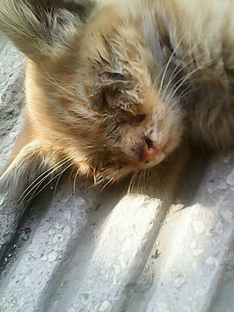 یه سوراخ روی گردنه ک من استخون گردنش رو میبینم.اما خون نه. دکتر میگفت این اینطوری با زجر میمیره بهتره که راحتش کنیم اما نظرم این بود تمام تلاشم رو برای بهبودیش انجام بدم.یه دارویی به نام اکسین (اگه اشتباه نکنم) داد که هر 8ساعت باید بهش توی سوراخ ها ریخته بشه.بسیار بسیار نحیفه و اصلا چیزی نمیخوره