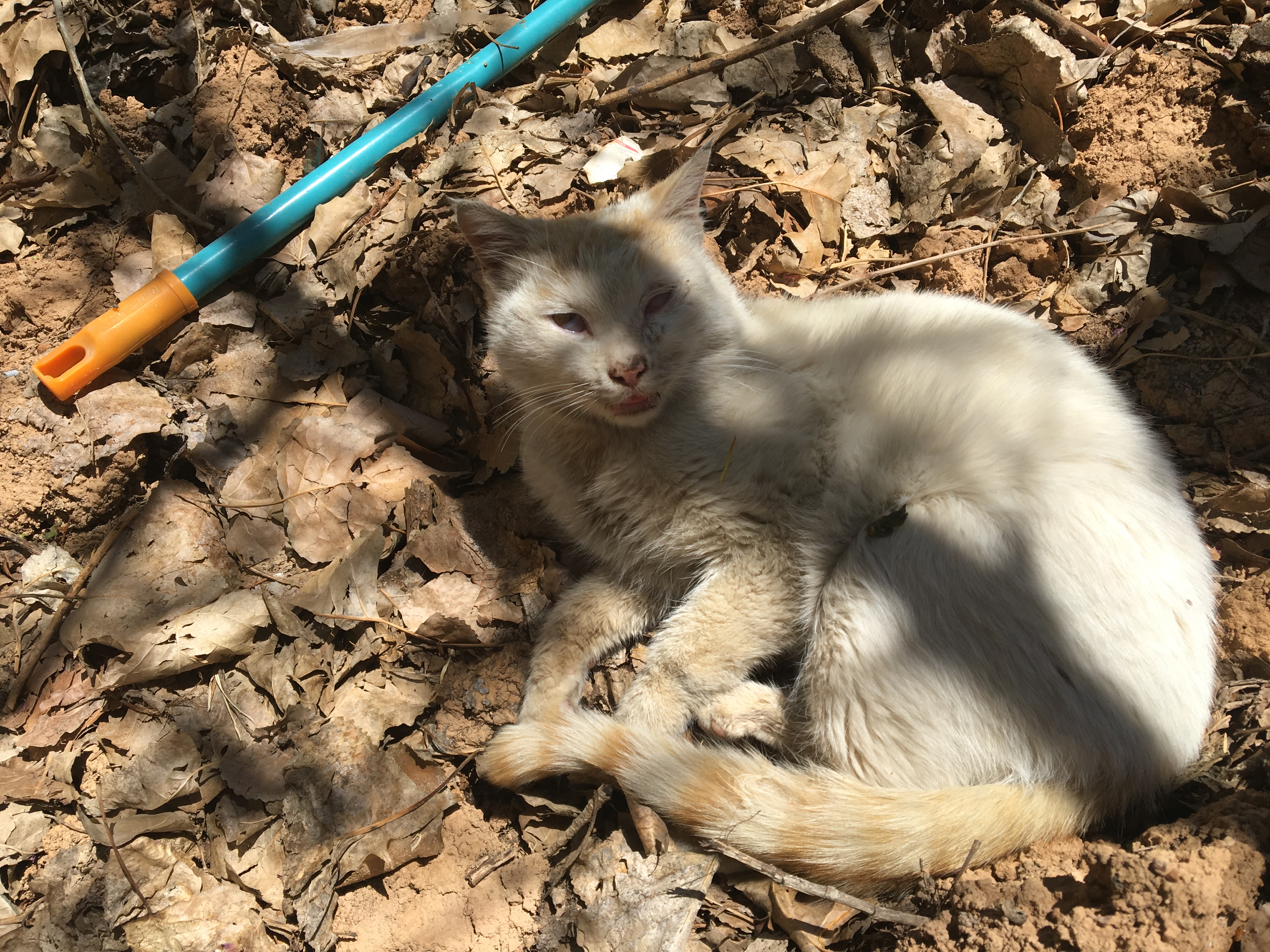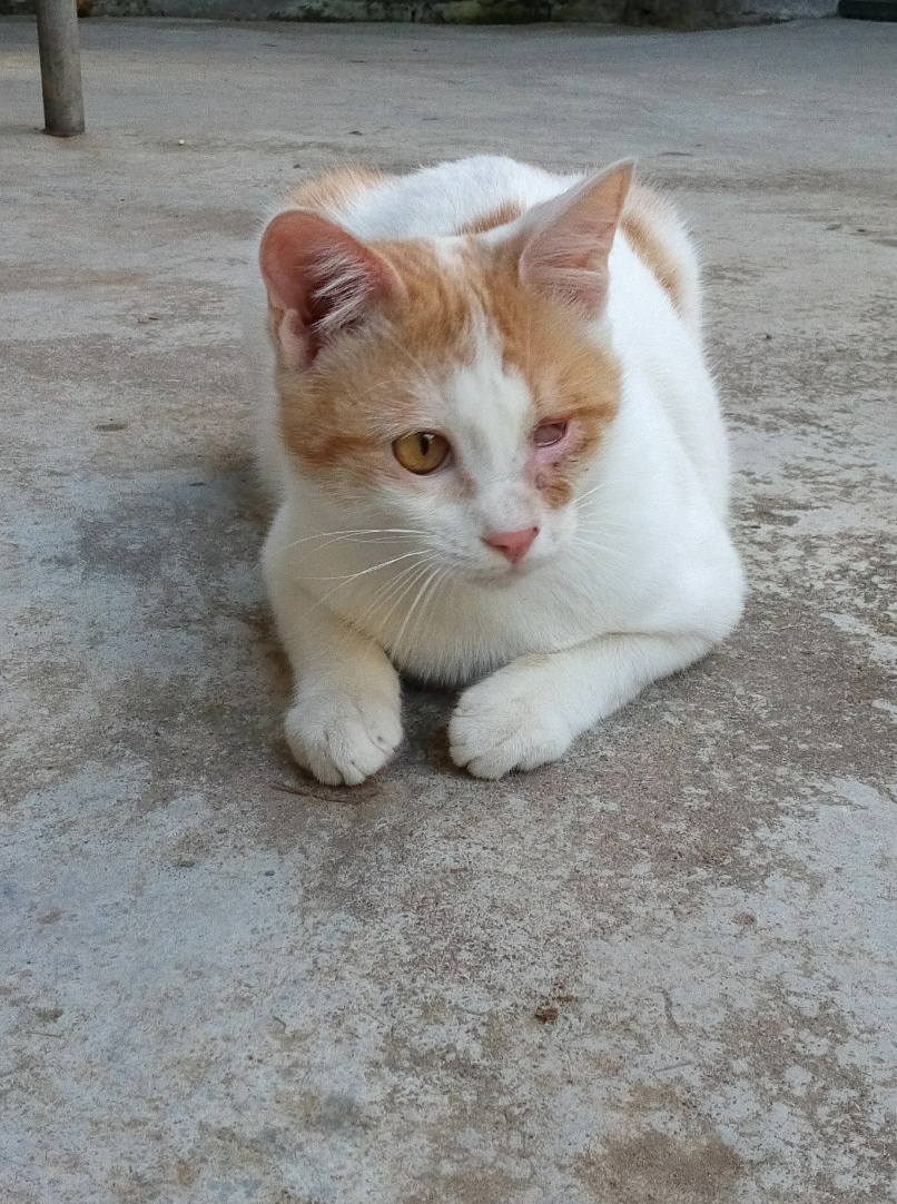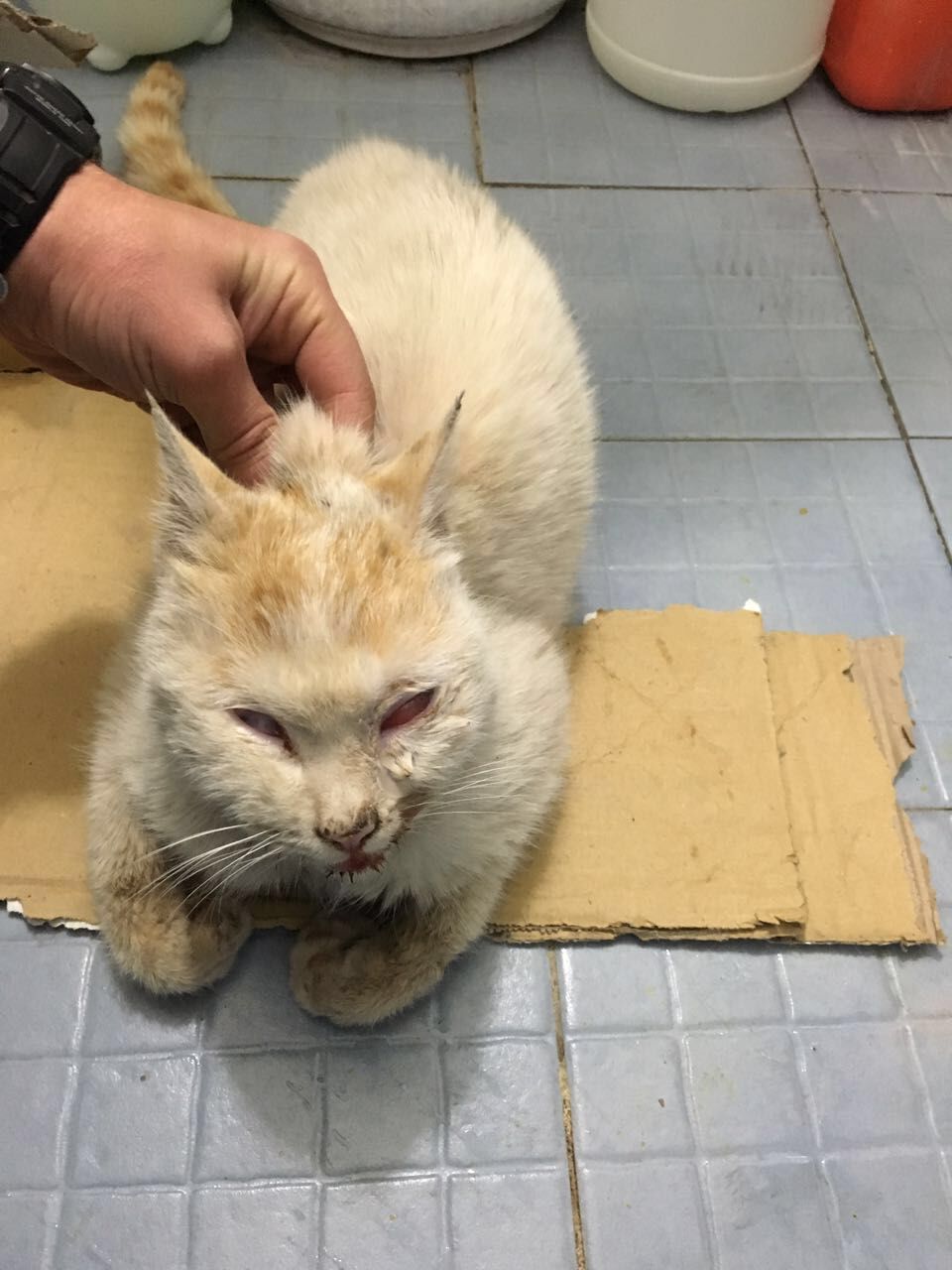 با گربه ای در خیابان مواجه شدم که ظاهرا تصادف کرده بود - چشم های بی نوا یکی سفید بود (انگار چیزی جلو چشماش بود) که از این چشم اشک زیادی بیرون می امد. یک چشم دیگرش تا نصفه سفید بود (تا نصف قرنیه بود نصف دیگرش یک لایه سفید جلوی قرنیه را گرفته بود.