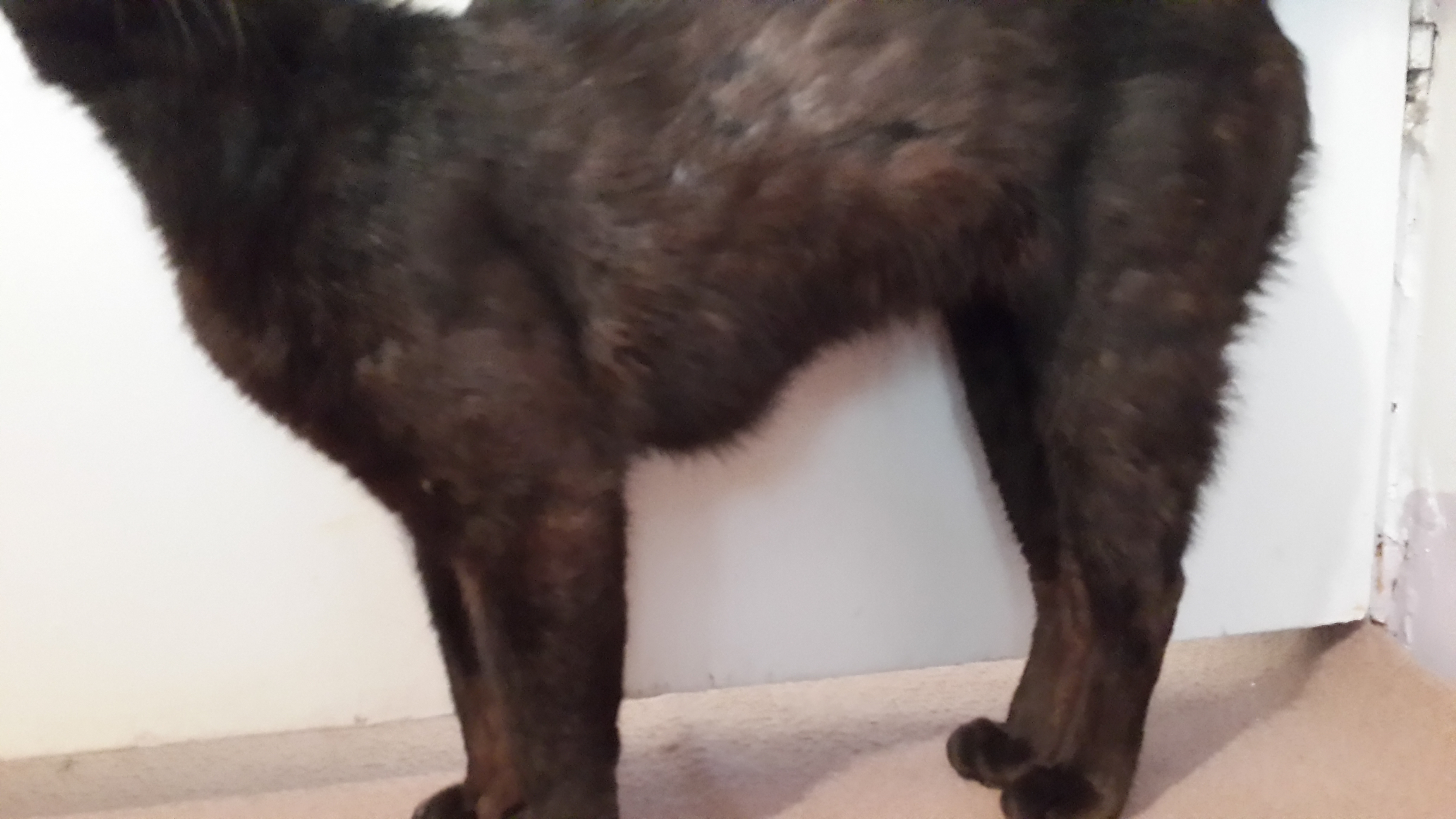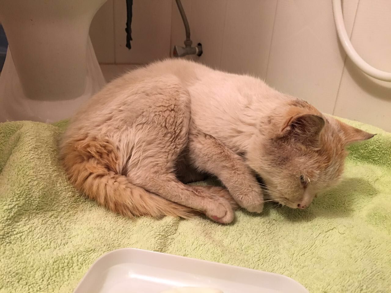 گربه تعادل نداشت. و ناله شدیدی میکرد. در راه زبانش از دهان بیرون بود و بعد از دقایقی زبانش رو برد داخل.