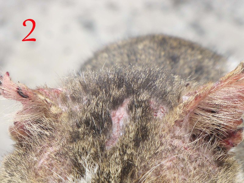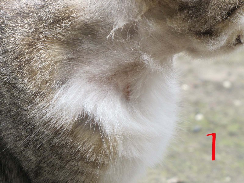 مورد 1: این گربه ی ماده دو ساله و نیمه و حمایتی/خیابانی هست.نزدیک به دو ماهه که اوایل گوشه گیر بود و ترشح از چشم داشت.اما الان یک ماهی میشه که موهای پس سر و اطراف گردنش ریخته.چند جوش قرمز کوچک رد که ظاهرا به علت خاراندن کنده شد و کمی خون اومد.از هفته ی گذشته زخمها بهبود پیدا کرده ولی پوست همچنان بدون مو و زبر هست.اما فعالیتش عادی هست و خیلی خوب هم غذا میخوره.اما گاهی یکی از چشمهاشو رو نیمه بسته نگه میداره.دوبار آموکسی کلاو 312 به ازای هر کیلو 1 س س دادم که از نظر چشمی بهتر شد.ولی ناراحتی پوستی هنوز باقیست.