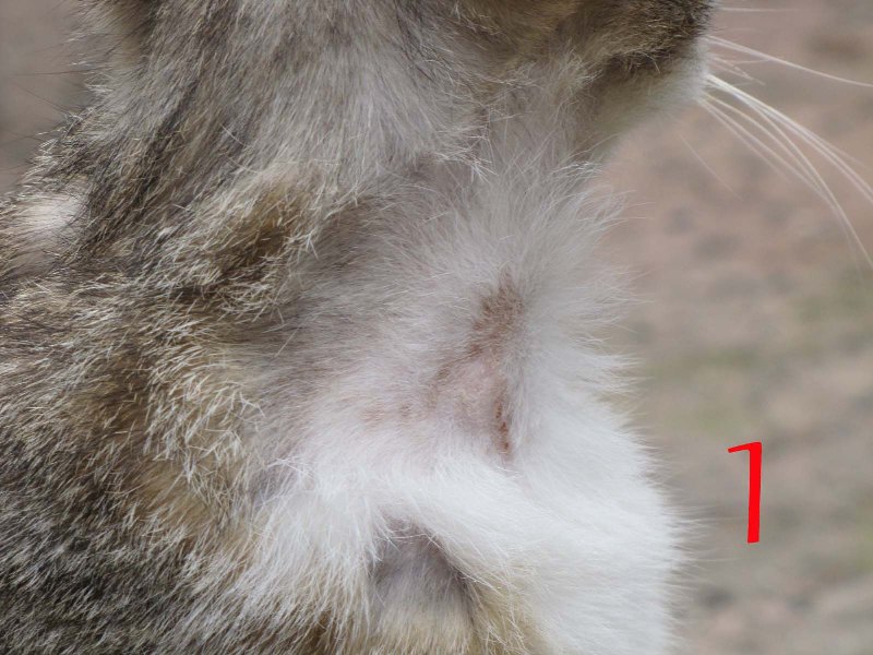 خارش و عدم پاسخ به آنتی بیوتیک مربوط به گربه ی اولی هست که دچار قرمزی و کچلی مو در ناحیه گردن شده بود.البته عکسها و زمان پرسش حدودا مربوط به یک ماه پیش بود و در حال حاضر التهابی نداره و فقط کم مو هست.