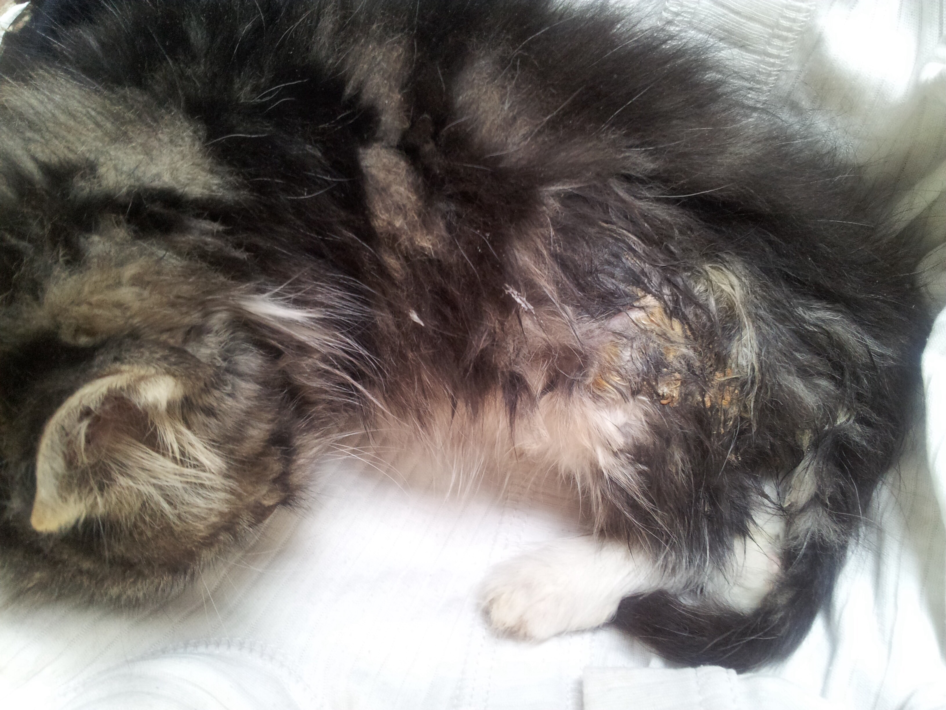 سلام خسته نباشيد. گربه من يك پرشين يك ساله ست روي شكم و زير بغلش (همونطوري كه داخل عكس ملاحظه مي فرماييد)به اندازه يك سكه دونه هاي سياه داره و موهاي اون قسمت ريخته. علتش چيه؟ ميشه لطف كنيد بگيد درمانش به چه صورته؟