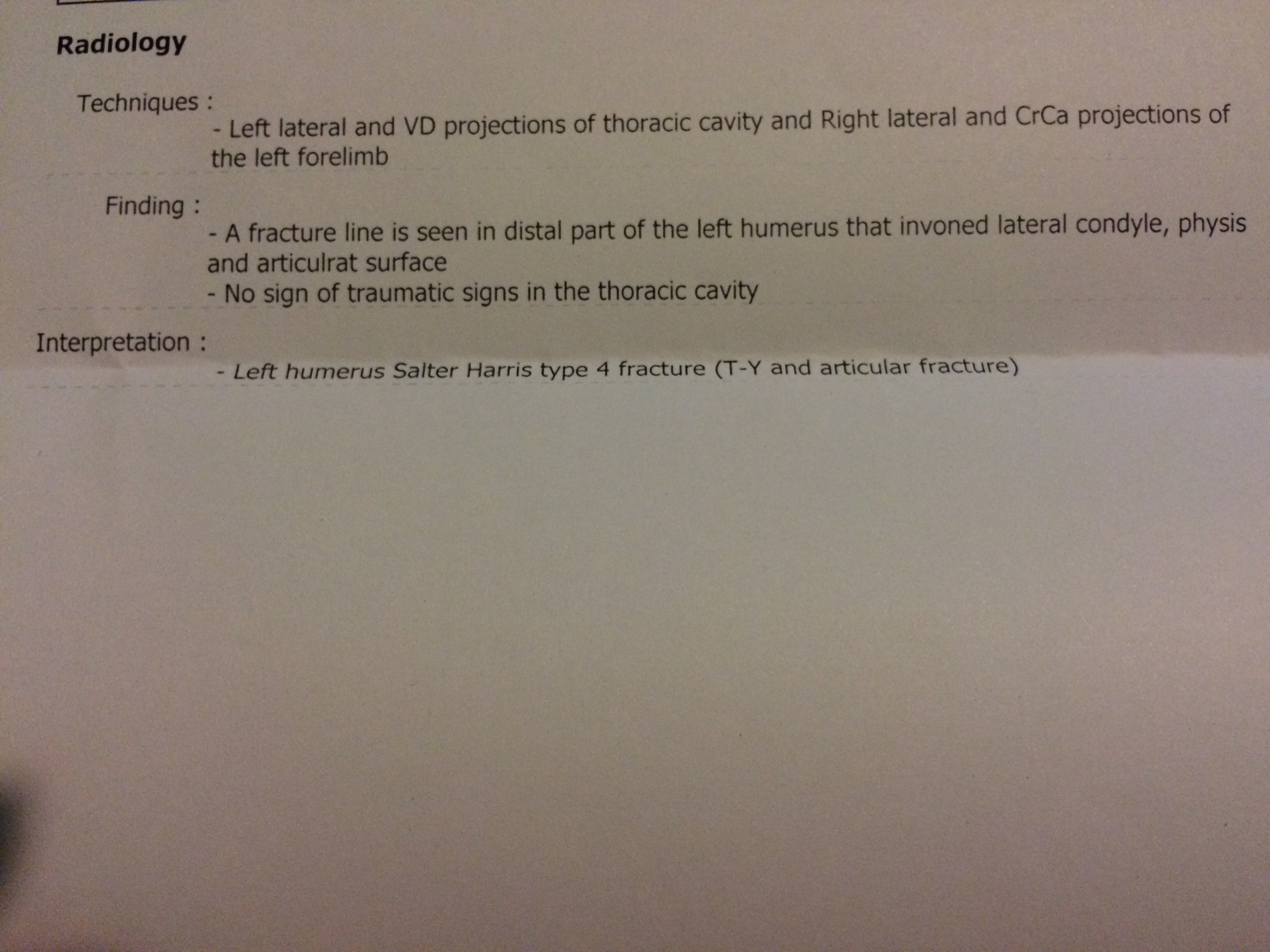 باسلام ضمن عرض خسته نباشيد، گربه دوماه و نيمه م امروز از بالكن به پايين پريده و باتوجه به ارتفاع خيلي زياد دست راستش دچار مشكل شده و نميتونه دستش رو زمين بگذاره و از صبح يكسره خوابيده و بي حاله، گزارش راديولوژيش رو ضميمه ميكنم ميخواستم نظرتون رو بدونم، آيا نياز به جراحي ، گچ گيري يا حتي گذاشتن پلاتين داره يا خير؟ لطفا راهنمايي كنيد( این سوال 10 سال قبل مطرح شد و 10 سال قبل به این سوال پاسخ داده شده است. )